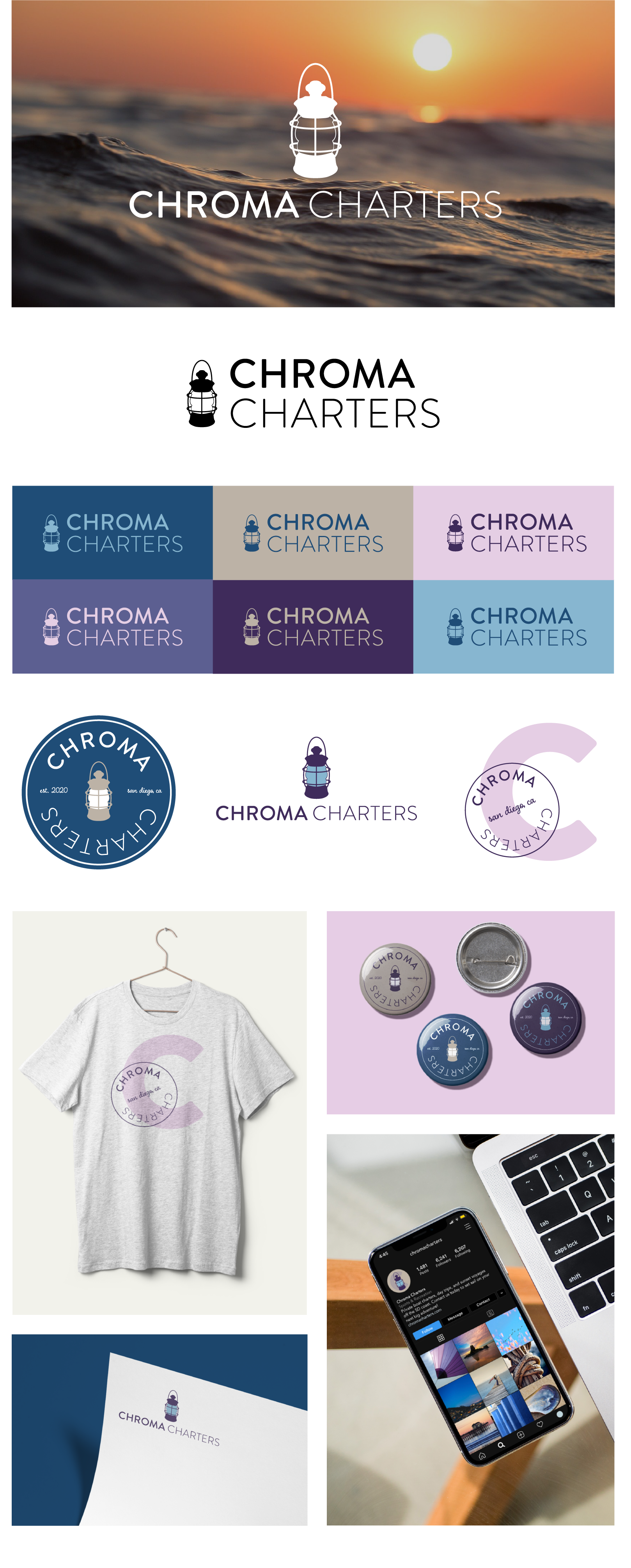 Final product of a branding challenge run by Michelle Wintersteen of Kiss My Aesthetic. Chroma Charters is a fictional boat chartering company based out of San Diego.
